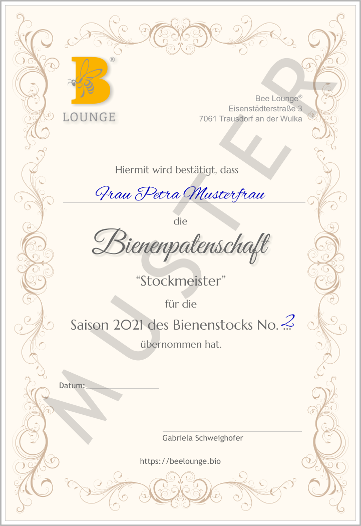 - Personalisierte Patenschaftsurkunde mit Bienenstocknummer
