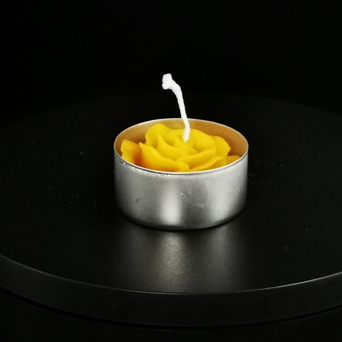 Kleine Kerzen in Rosenblütenform eignen sich als exklusivere Teelichter und als dezente Tischdeko.